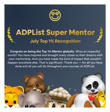 Supporting designers worldwide as an ADPList mentor, empowering them to think strategically, grow their voice, and create meaningful impact through design.